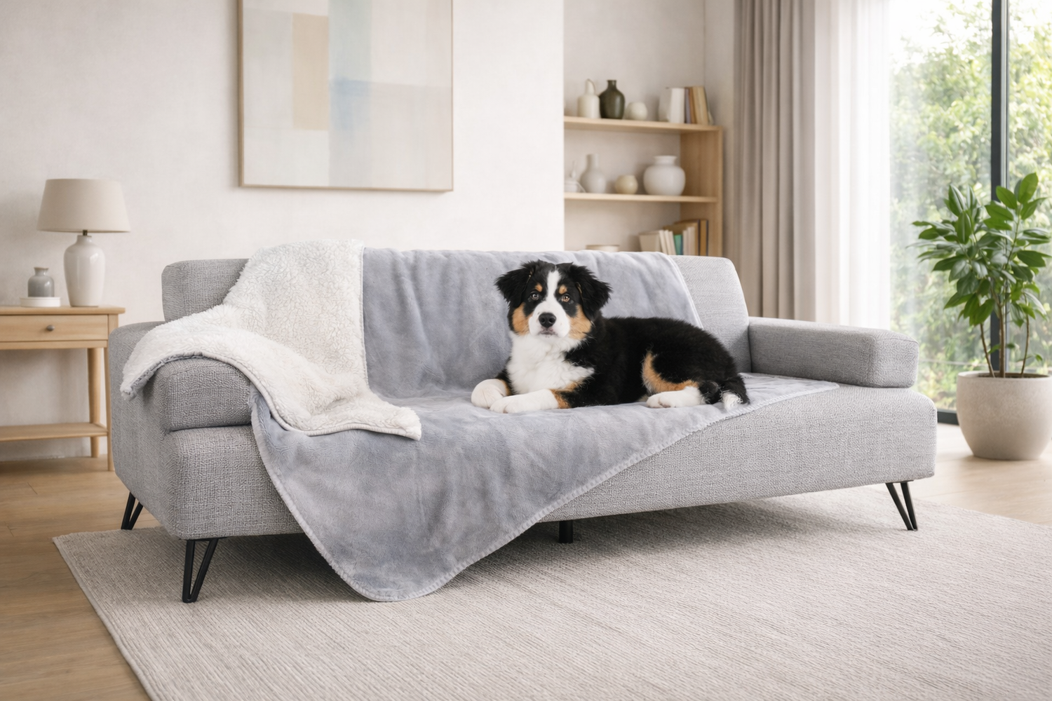 FURNITURE PROTECTOR This pet blanket is suitable for all types of furniture, especially your sofa and bed. It can protect your furniture from scratches, bite marks, urine vomit and saliva from your pets.